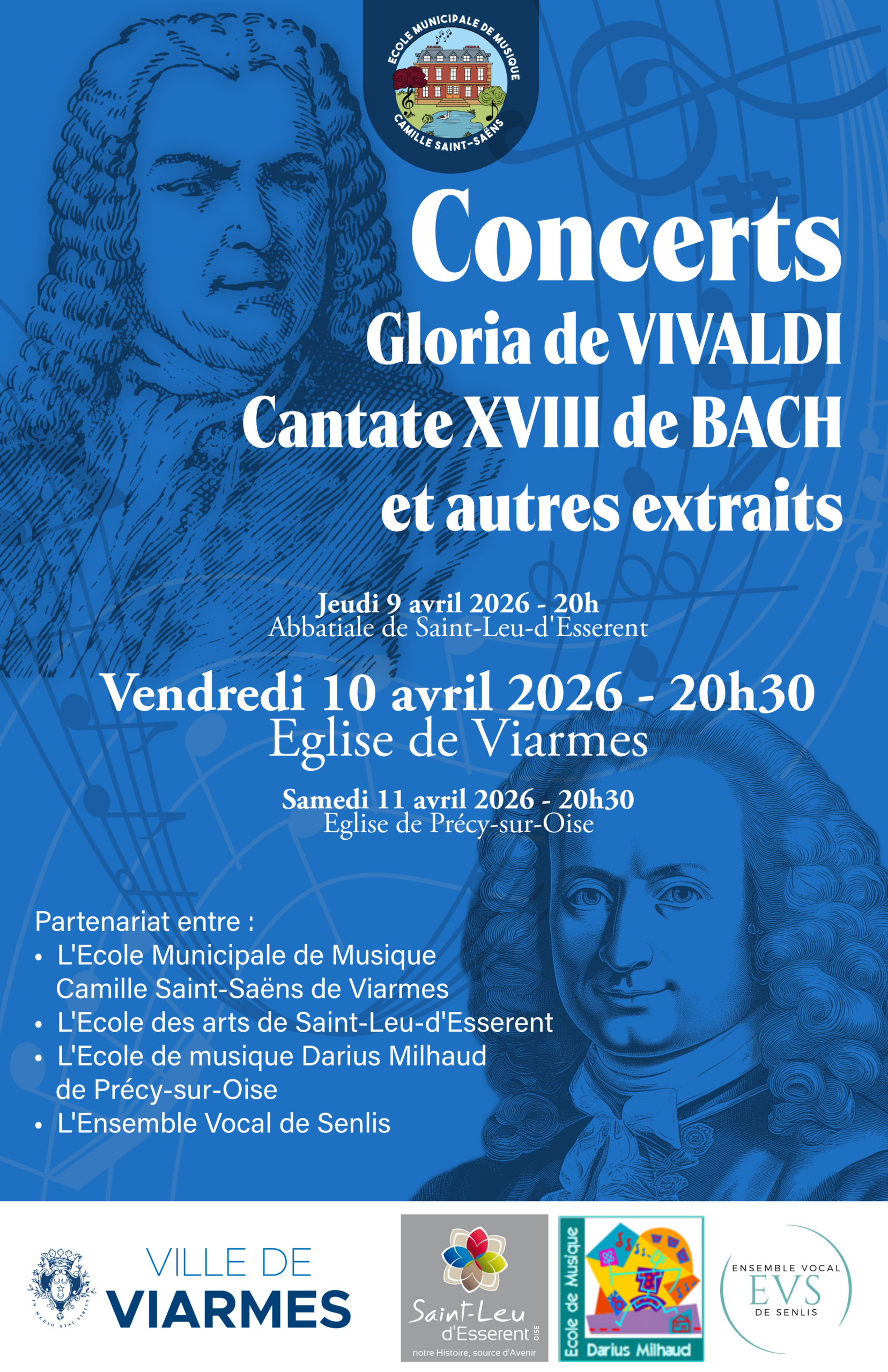 Ce projet réunit plusieurs acteurs du territoire : l’École Municipale de Musique Camille Saint-Saëns de Viarmes, l’École des arts de Saint-Leu-d’Esserent, l’École de musique Darius Milhaud de Précy-sur-Oise et l’Ensemble Vocal de Senlis.